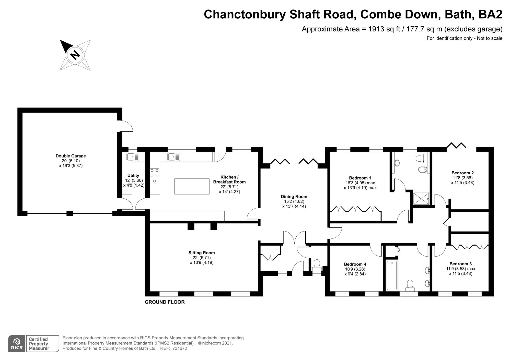 A four-bedroom, single storey detached Bath stone house, built 16 years ago, with gardens, large double garage with automatic doors and off-street parking for several vehicles. Located in Shaft Road, Bath on the periphery of Combe Down village, within the Cotswold Area of Outstanding Natural Beauty, but just 1.8 miles from Bath Spa railway station.