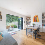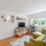 The 1960s semi-detached property has been substantially transformed by its current owners through an extensive renovation focused on sustainability and thoughtful design details. ‘The house was falling apart,’ they recall, ‘we stripped it right back and rebuilt it with light, space and modern living in mind.’ The layout was cleverly reconfigured to create an open-plan ground floor, introducing an enlarged, modern family kitchen and reimagined staircase to accommodate an expanded WC and a new utility space. New windows, doors and underfloor heating improved insulation and energy efficiency, creating a cosy, comfortable home.