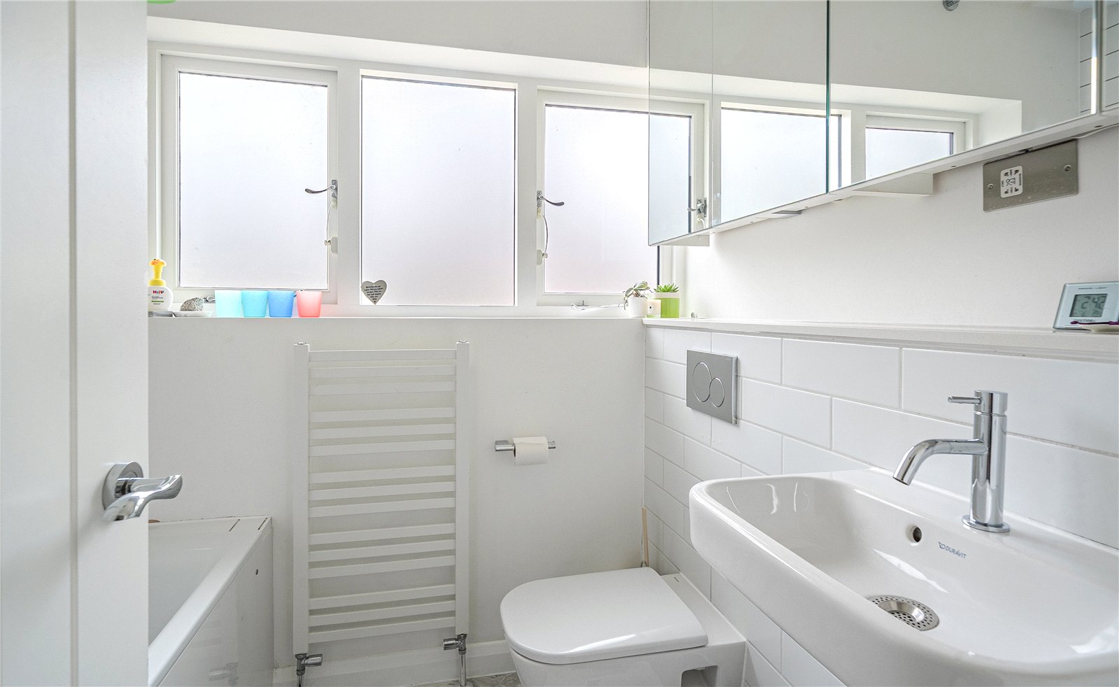 Upstairs, bespoke built-in wardrobes make the most of every corner. The family bathroom was redesigned for comfort and practicality, with a new layout allowing for generous storage and natural light. Throughout, the attention to detail is evident — a modern, easy-to-live-in three-bedroom home that retains a warm, welcoming feel.