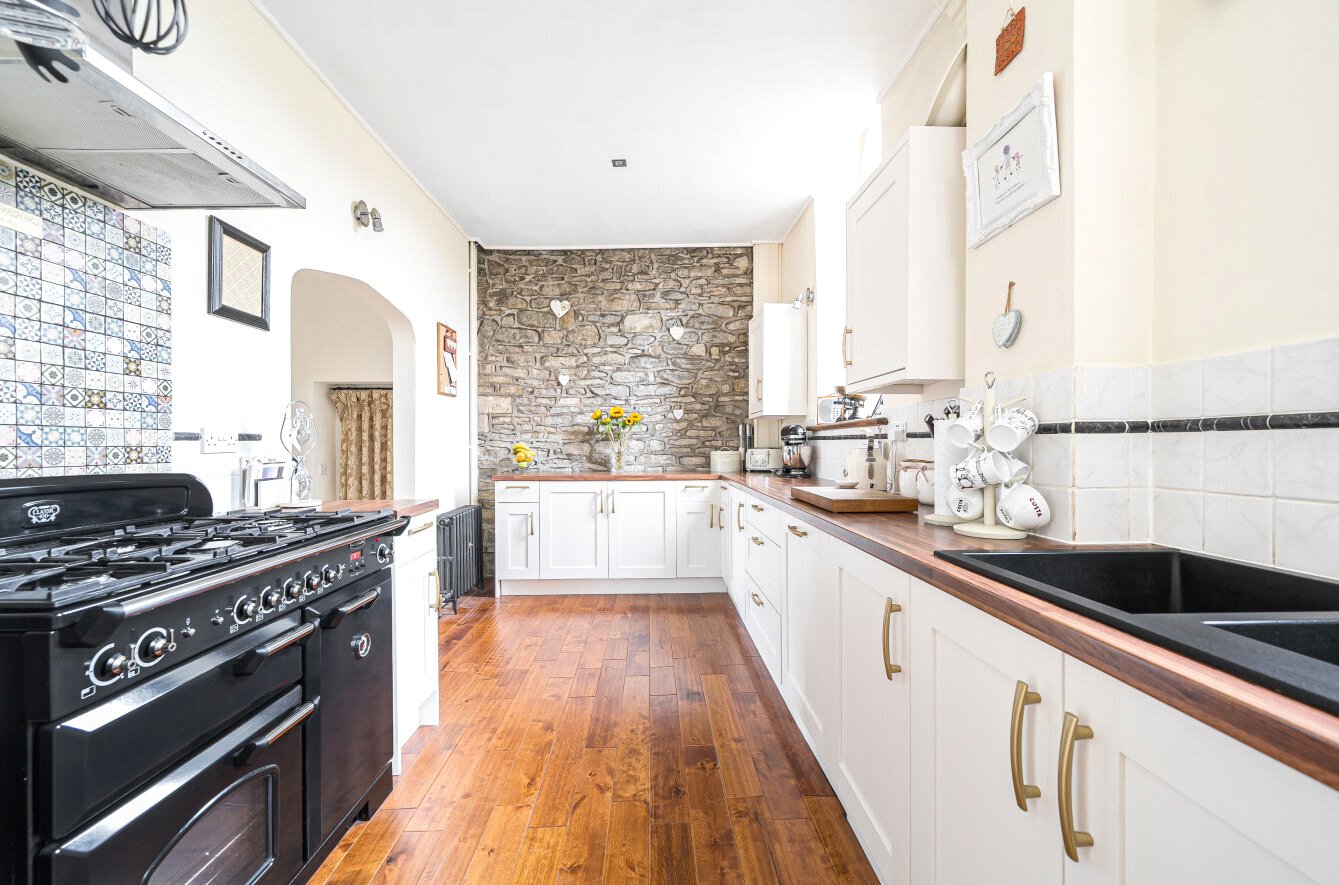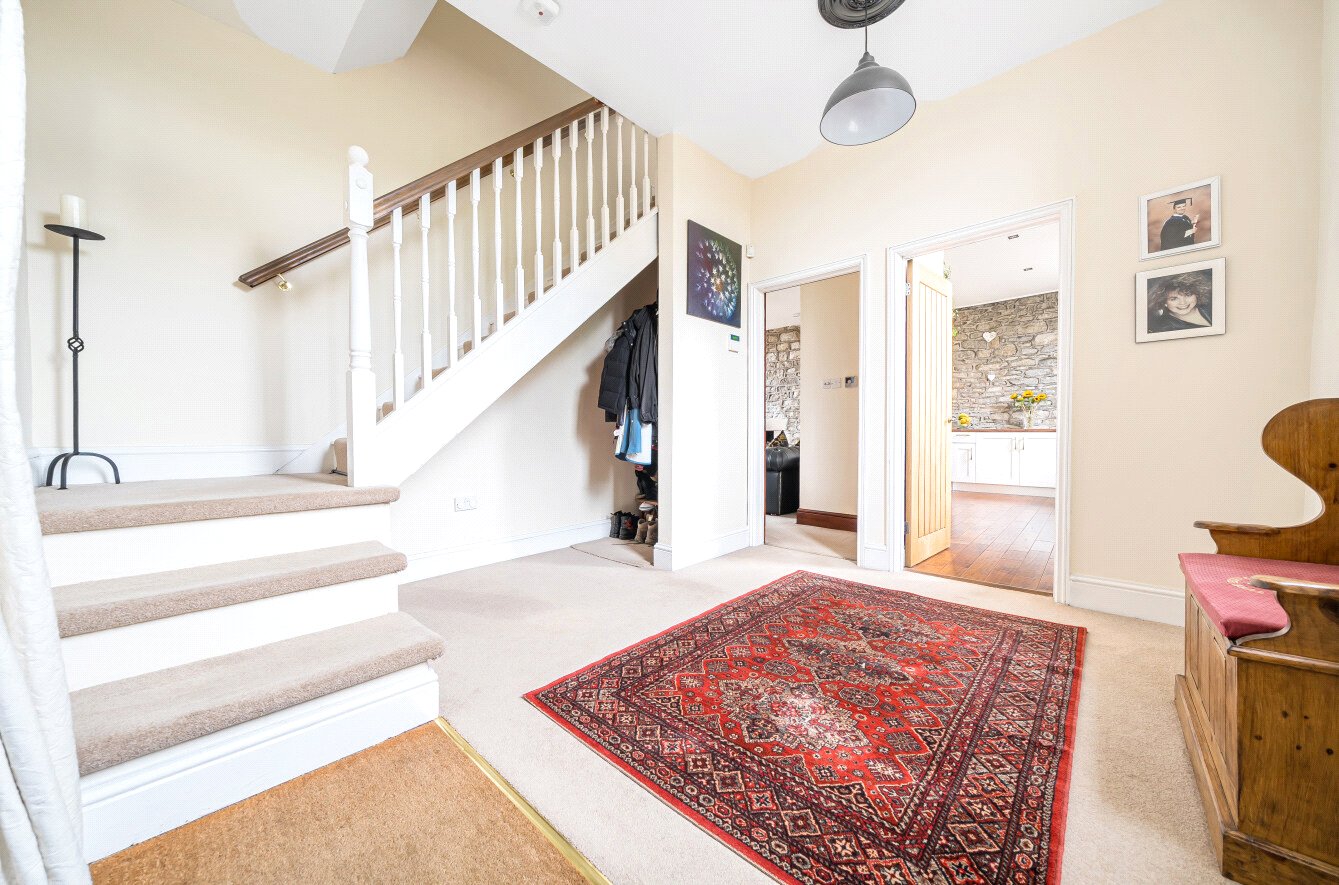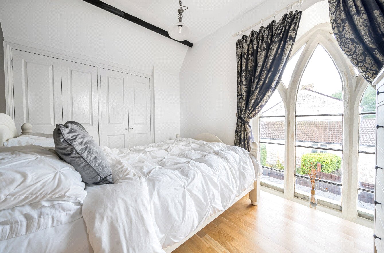 Built circa 1850, The Old Parish Hall in Farmborough is a unique four-bedroom property that was originally used for the local community and later as a Temperance Hall. Converted into dwelling in the mid-1980s, it retains many of its original features, including original beams, stone steps, and stone mullioned windows, which add to its unique appeal and historical significance. These elements blend seamlessly with modern comforts, offering a home that is both convenient and full of character. A three-storey building, it comprises an entrance hall, a large sitting/dining room, and a light-filled kitchen on the ground floor. Three bedrooms, two with en suite bathrooms, and a shower room occupy the first floor. The second floor has two rooms: one is a bedroom, and the other is used as a games area, which could serve as a fifth bedroom. ‘We were attracted to the character, charm, and spaciousness of the property, which has provided us with plenty of room for family and friends. Living here, we’ve really appreciated the wonderful views and walks, and lovely neighbours,’ say the current owners. The property boasts a generously sized garden, well-maintained and featuring a new greenhouse, hot tub, and a summerhouse with decking and a separate courtyard. Professionally fitted electric gates lead to a large parking area that can accommodate multiple vehicles, ensuring convenience and security for residents and guests alike. In addition, there is a multi-purpose double garage and a woodshed to the rear of the property. Conveniently located within easy reach of Bath, Bristol, excellent schools, and Bath Spa University, Farmborough boasts a community shop, two pubs, and a recreation ground offering a tennis court and hall, all within walking distance.
