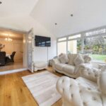 ‘The outdoor space is beautiful and features a good-size lawn area with step access to a large well-planted rockery fitted with lighting. There is also a sun trap raised patio and barbecue area, the perfect space to entertain family and friends in the summer.’