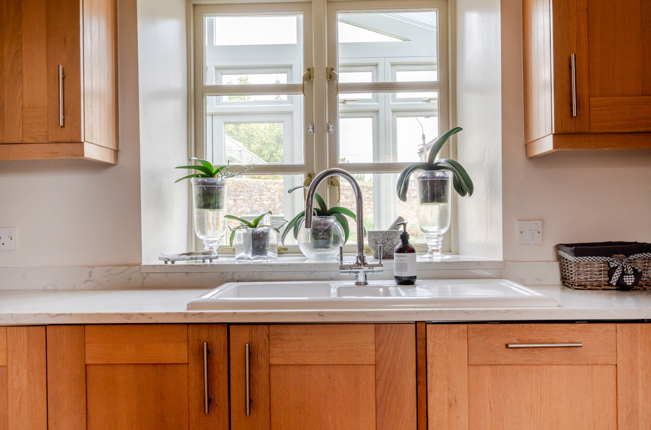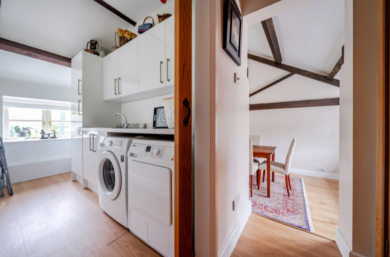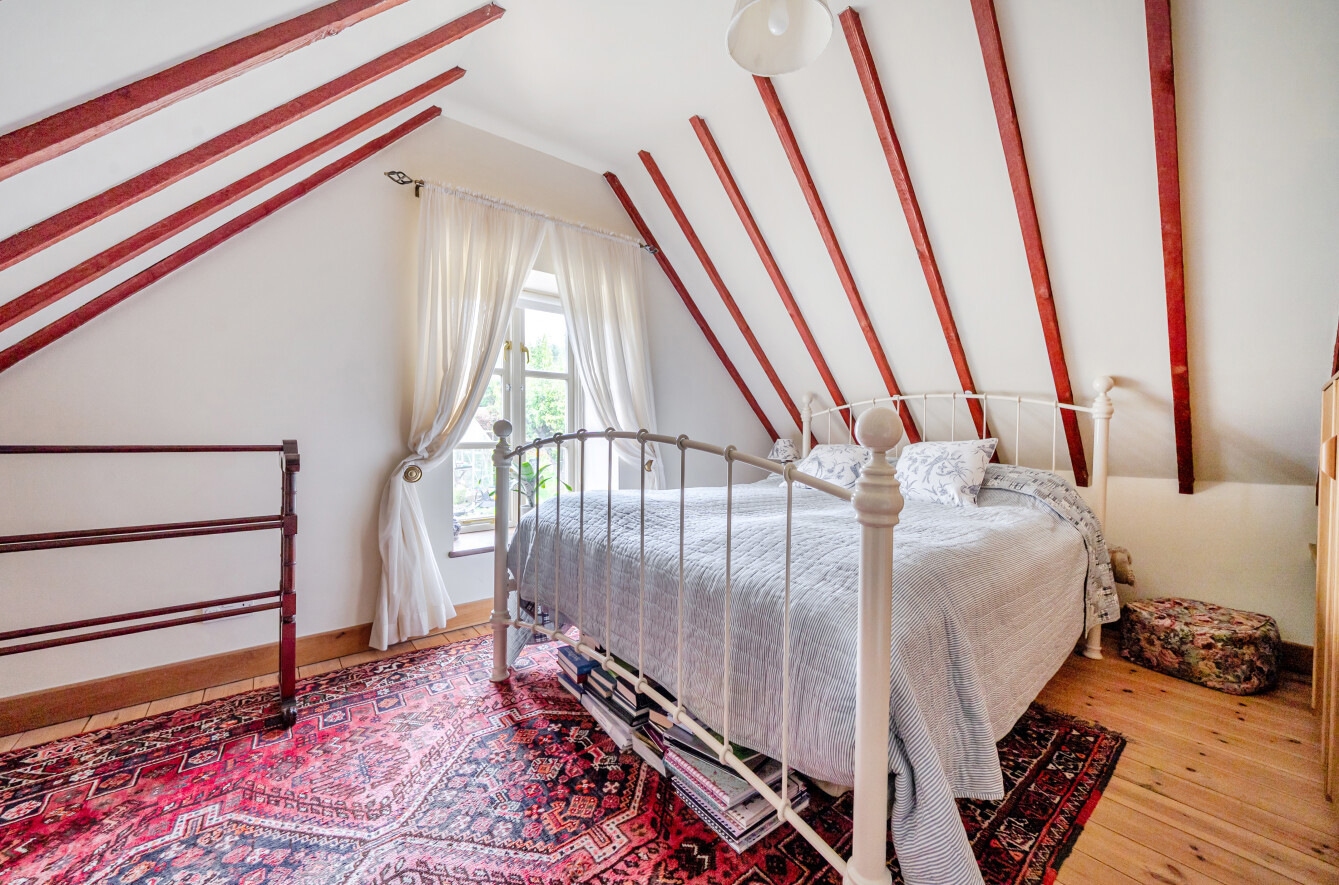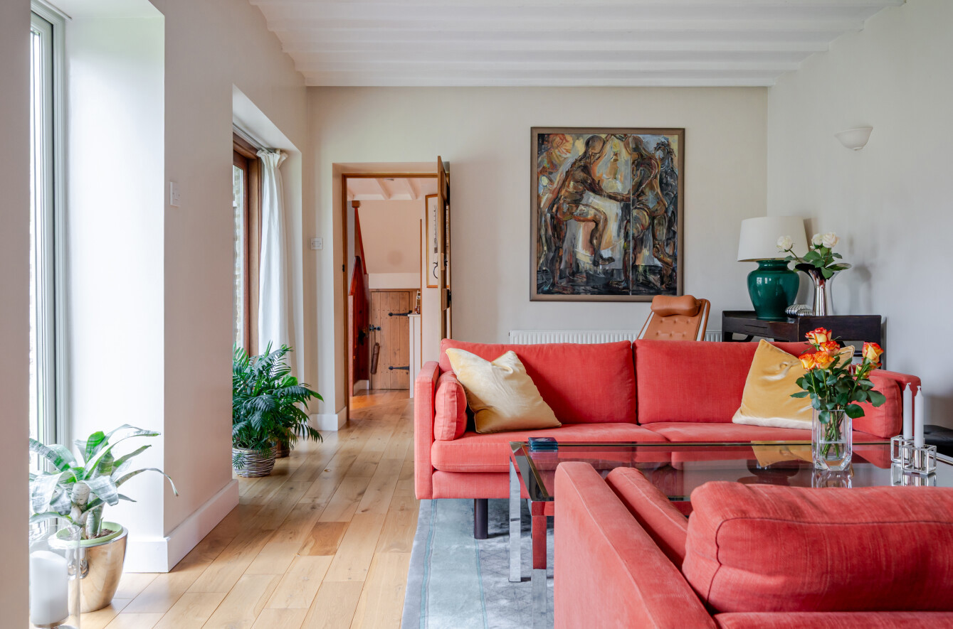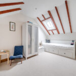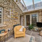 Converted from 19th-century farm buildings around 1999–2000, it blends rustic character with modern convenience. ‘We chose the house for its charm and solidly built traditional style and a wonderful walled garden providing privacy,’ explain the owners. They add, ‘the annexe is a real asset, providing space for family and visitors.’ Designed for both family life and entertaining, the ground floor includes a dining room flowing into the kitchen passed a utility, leading onto the hall and sitting room. A double bedroom with en suite, a smaller bedroom currently used as a study, and a bright conservatory complete this floor. ‘The conservatory is in use all year except when temperatures are below freezing. It’s south-facing so gets plenty of sun but has good ventilation and is even better when the glass doors are thrown open.’ Upstairs, two further bedrooms and a family bathroom provide comfortable accommodation.