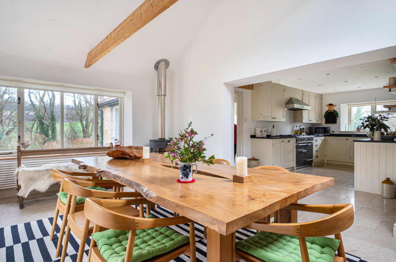 The owners, who have lived here since October 2014, say, ‘We were drawn to the village first and foremost, and then to the potential of a single-storey home we could restyle to suit modern living.’ Originally a working byre where cows were milked after coming up from the lower meadow, the property still carries that sense of heritage, with original beams throughout now carefully balanced with thoughtful updates.