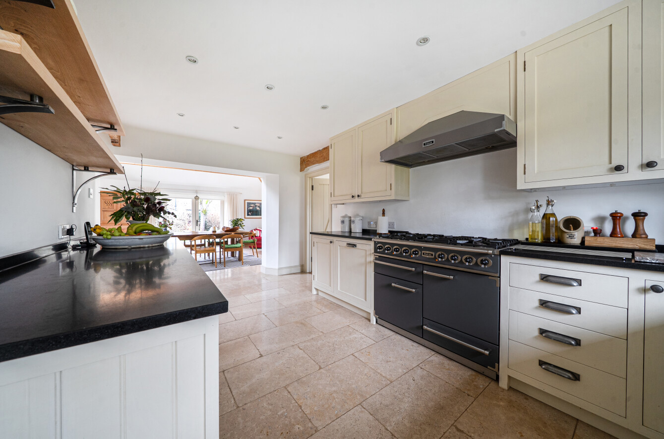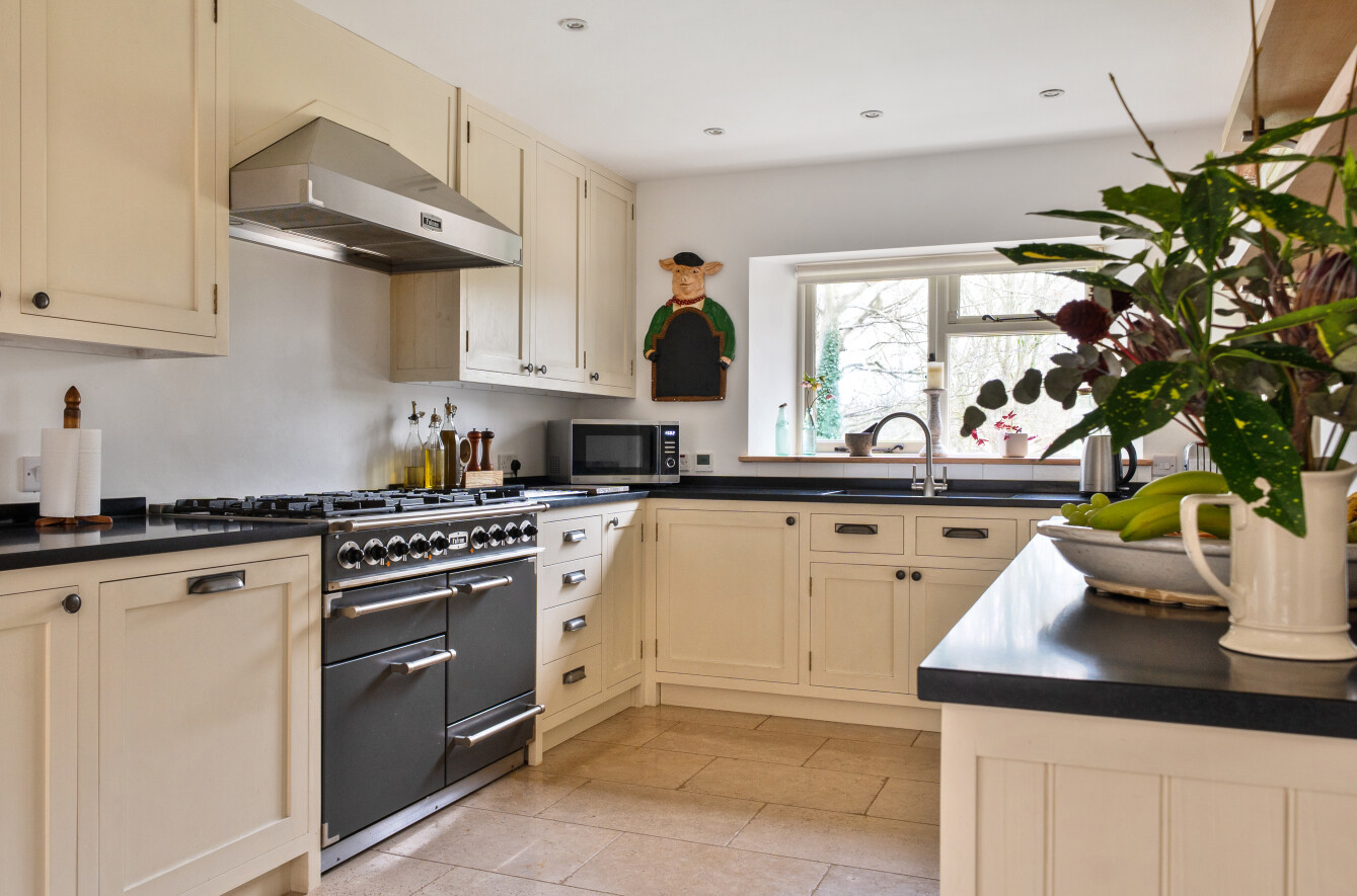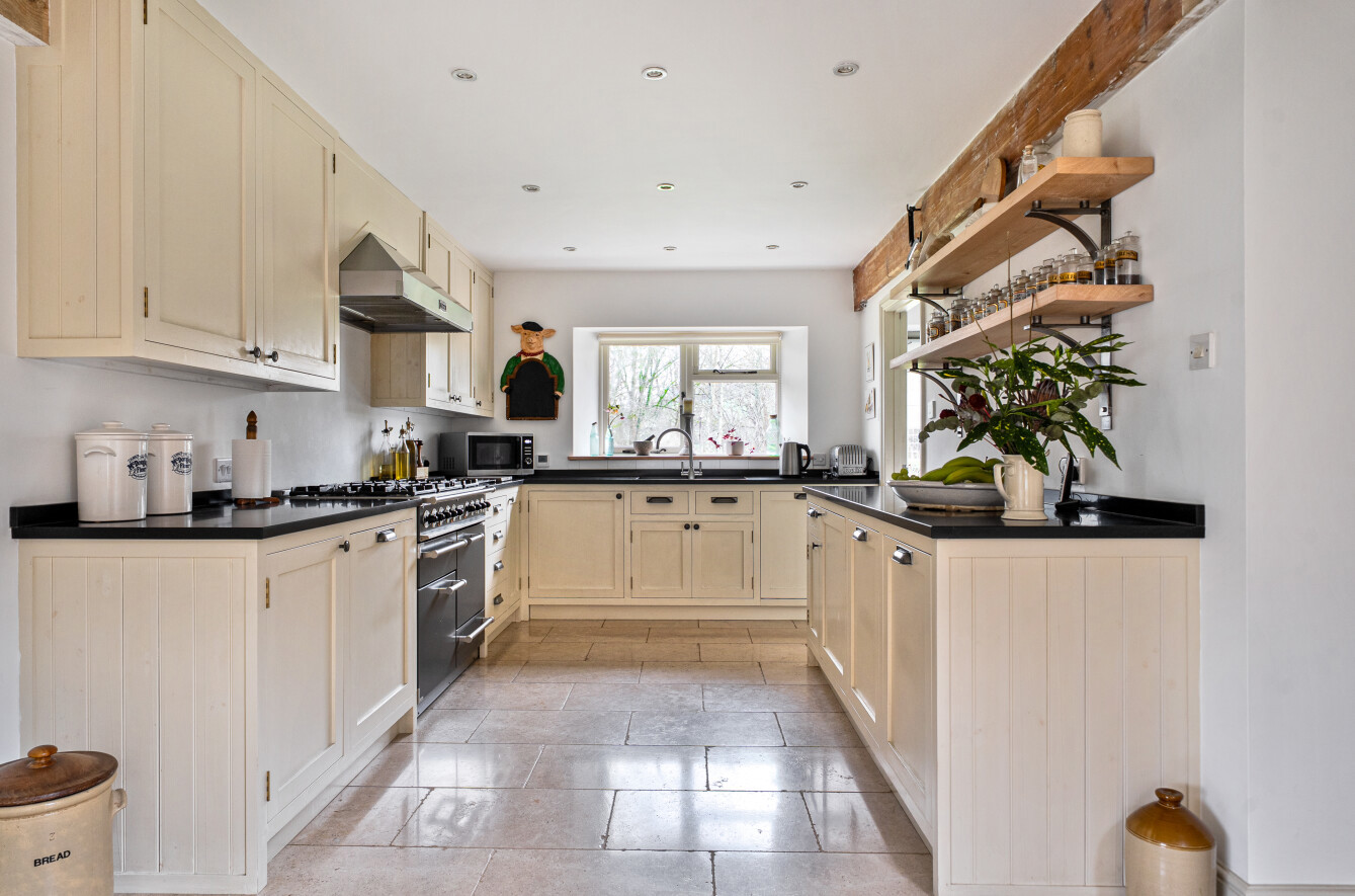 Recent improvements include limestone flooring, new radiators, updated bathrooms, a WC off a new utility room, replacement internal and wardrobe doors, and a new roof covering. A hand-built Shaker-style kitchen and two log-burning stoves add warmth and craftsmanship. The result is a home that feels both authentic and comfortable.