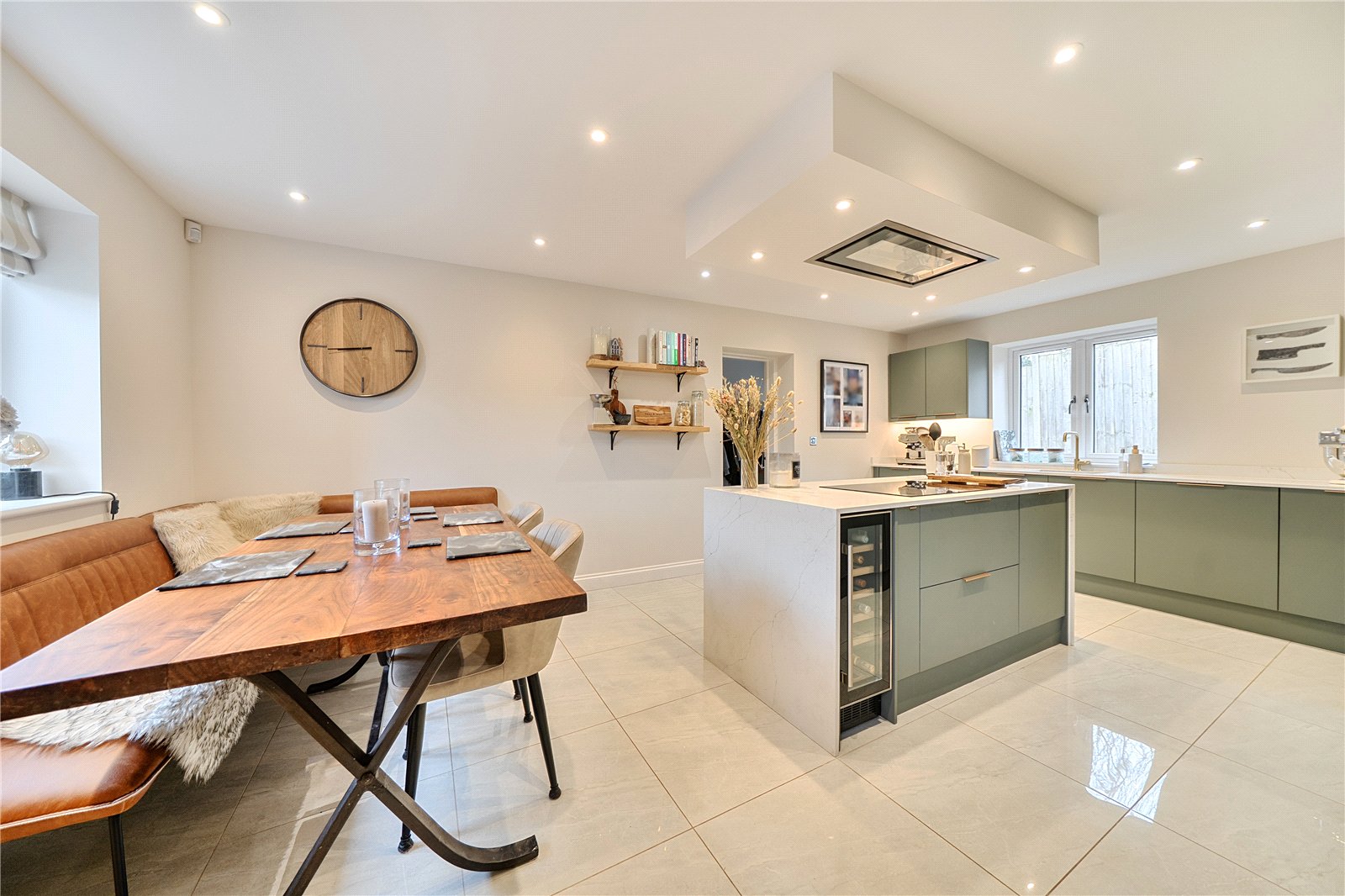 Positioned on a private development of just six houses, this contemporary detached home combines modern living with a tranquil setting. Purchased off-plan by the current owners, the property features underfloor heating, bi-fold doors, and a vaulted entrance hall with a mezzanine level, filling the home with light and space. ‘We’ve lived here for just under a year but sadly have to move for a job with a relocation package. We absolutely fell for the property and the area, and if we could pick the whole plot up and take it with us, we would,’ say the owners.
