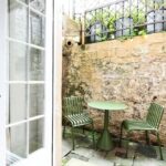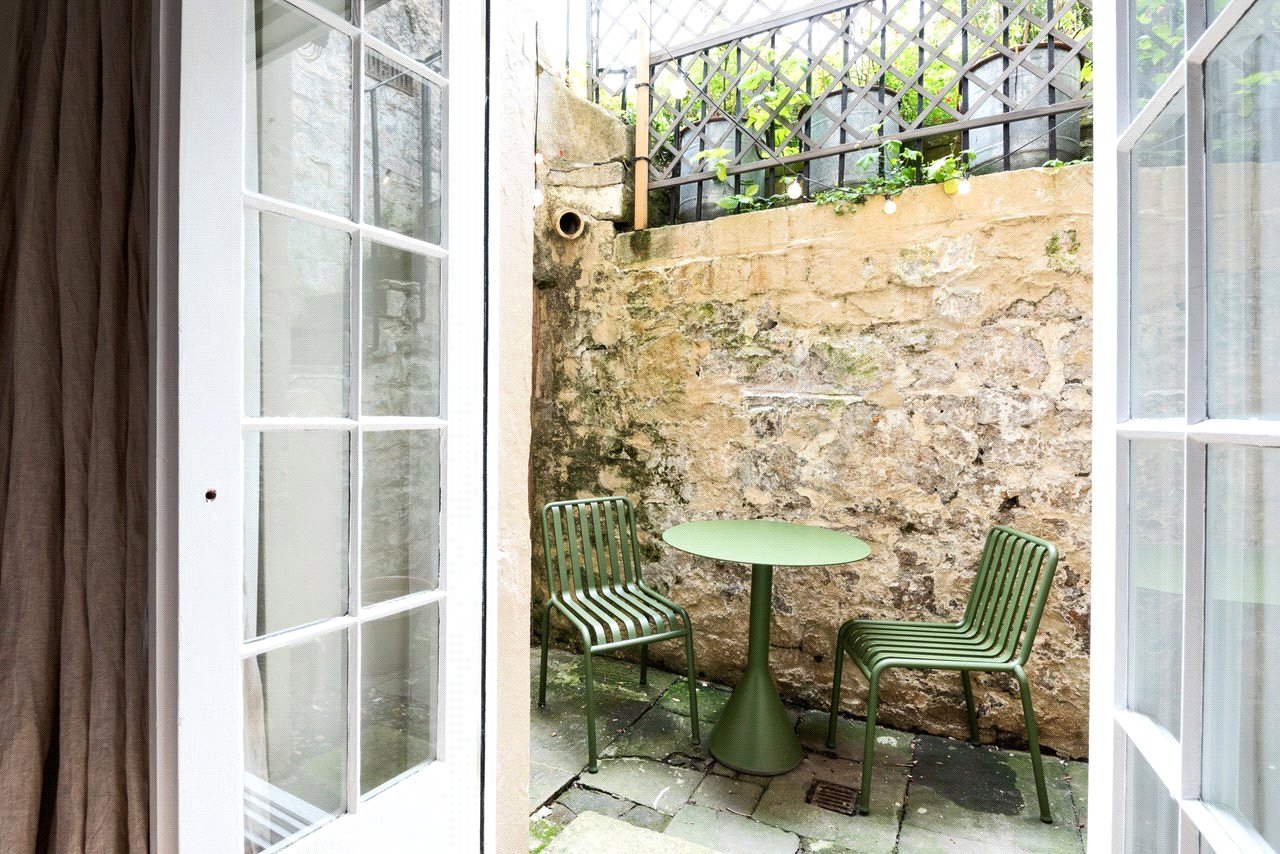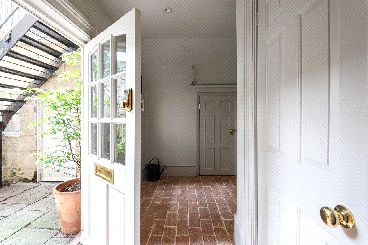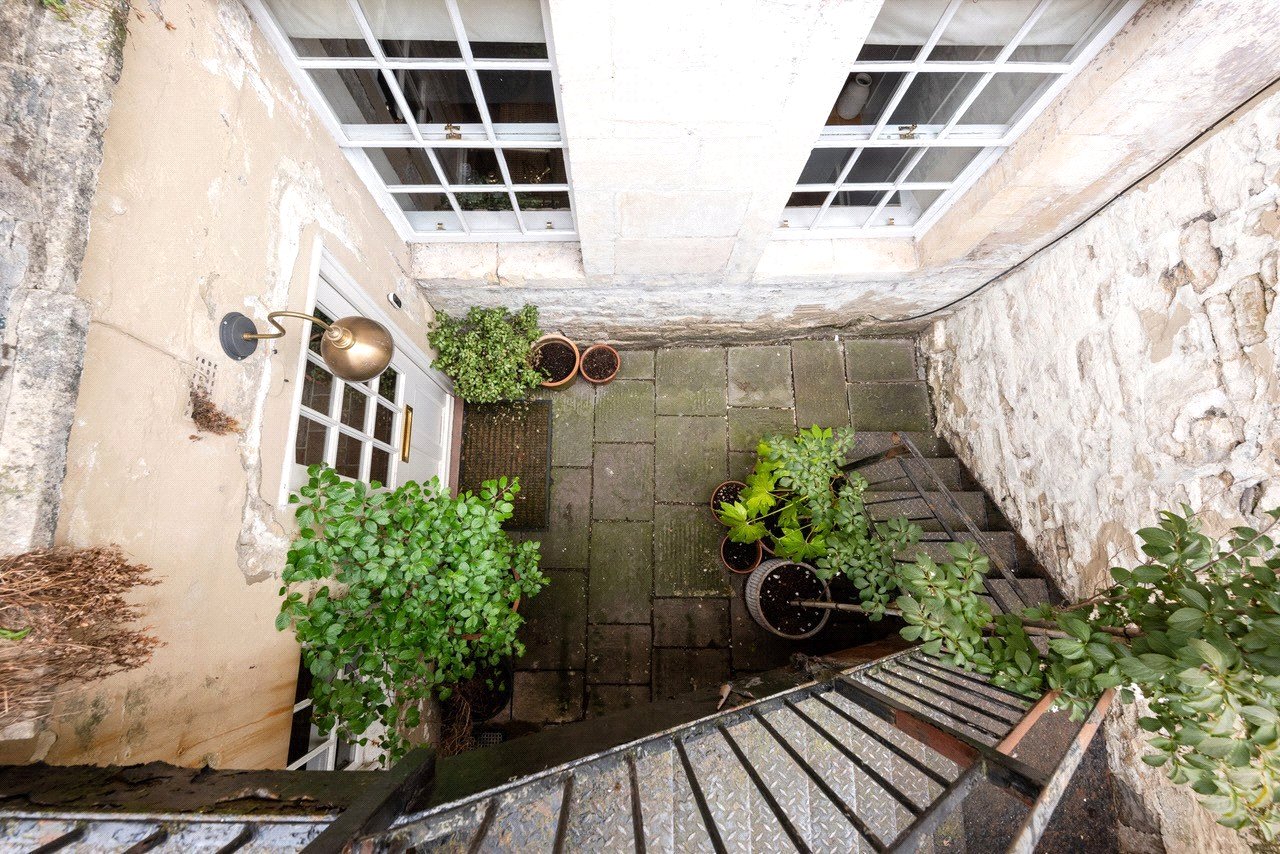 Situated on a quiet no-through road, the current owner recalls being drawn to the property by the charm of the Georgian building and its prime location. ‘Alfred Street is a quiet street, yet it’s right in the centre of Bath, just a short walk from The Circus, Royal Crescent, and excellent shops, cafes, and amenities,’ they say. Accessed via a private front door leading into an entrance hallway, the apartment opens onto a peaceful rear courtyard garden. ‘I also appreciated the sense of privacy the basement flat offers while still being so central,’ the owner adds.