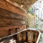 The outside space is private and sheltered, which makes it great for sitting outside with a coffee, reading, relaxing in the outdoor but covered copper bath or enjoying warmer days without feeling overlooked. ‘It’s been a lovely little retreat, especially in the summer.’