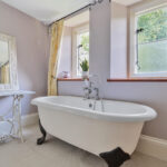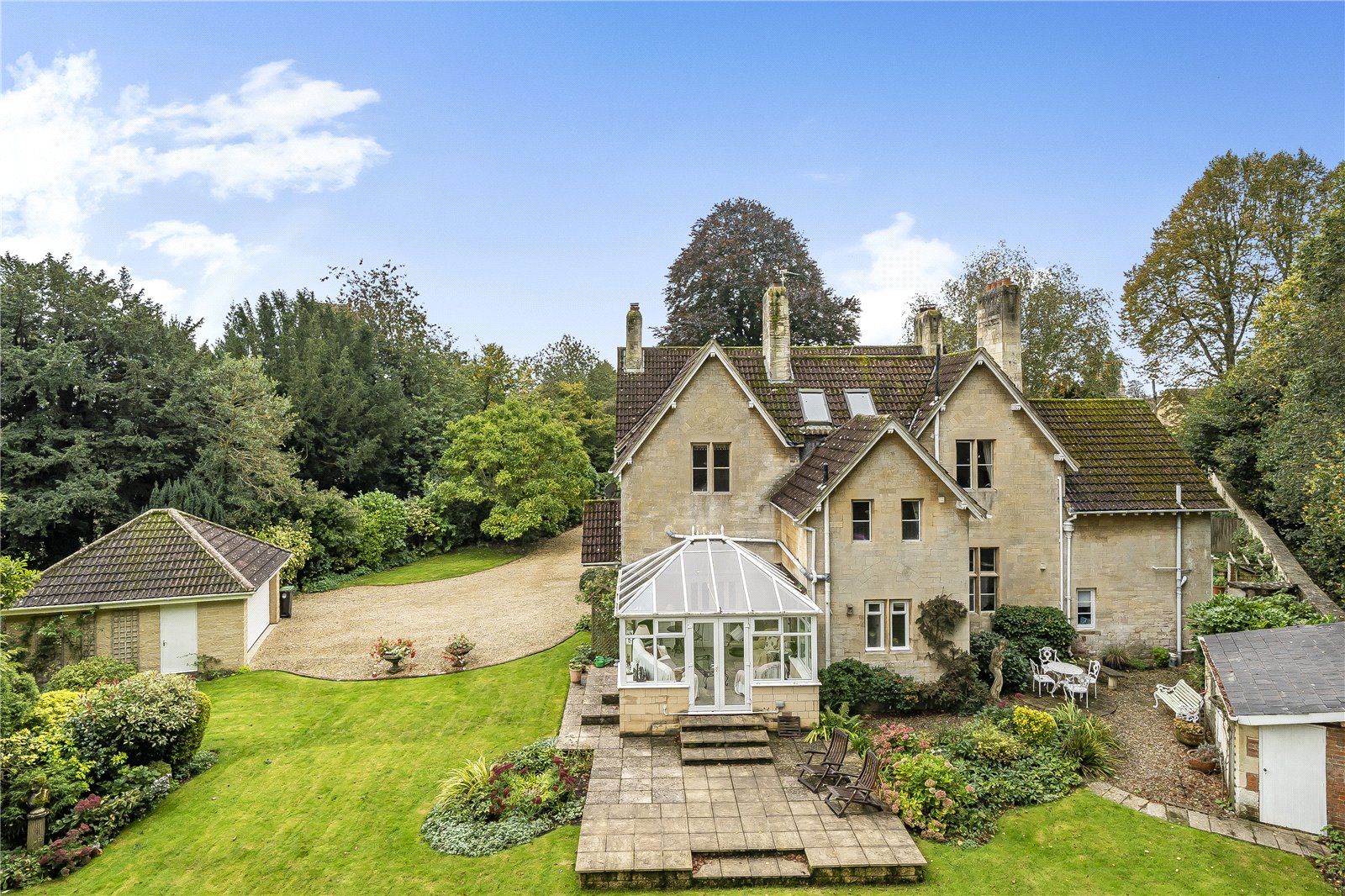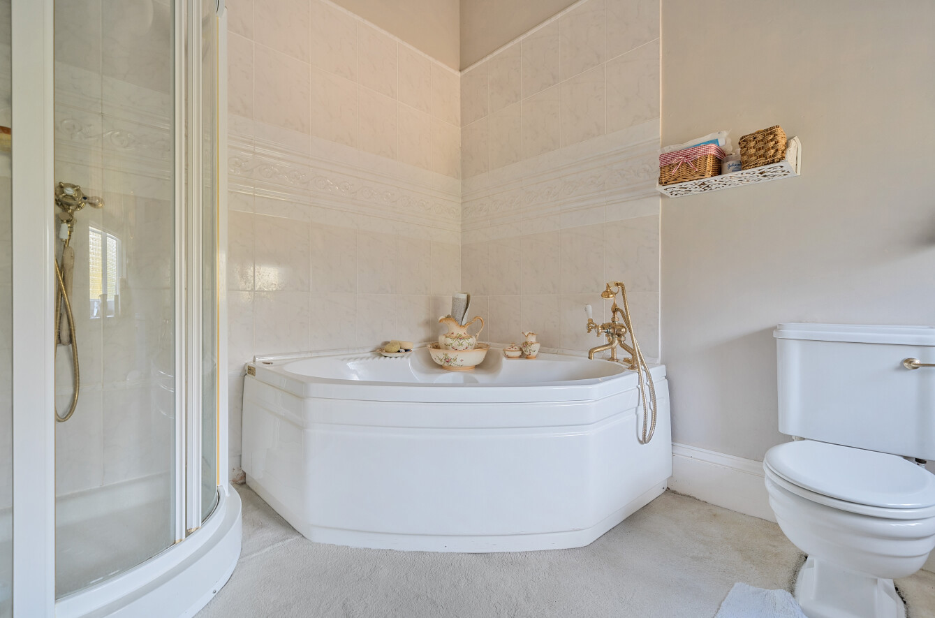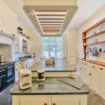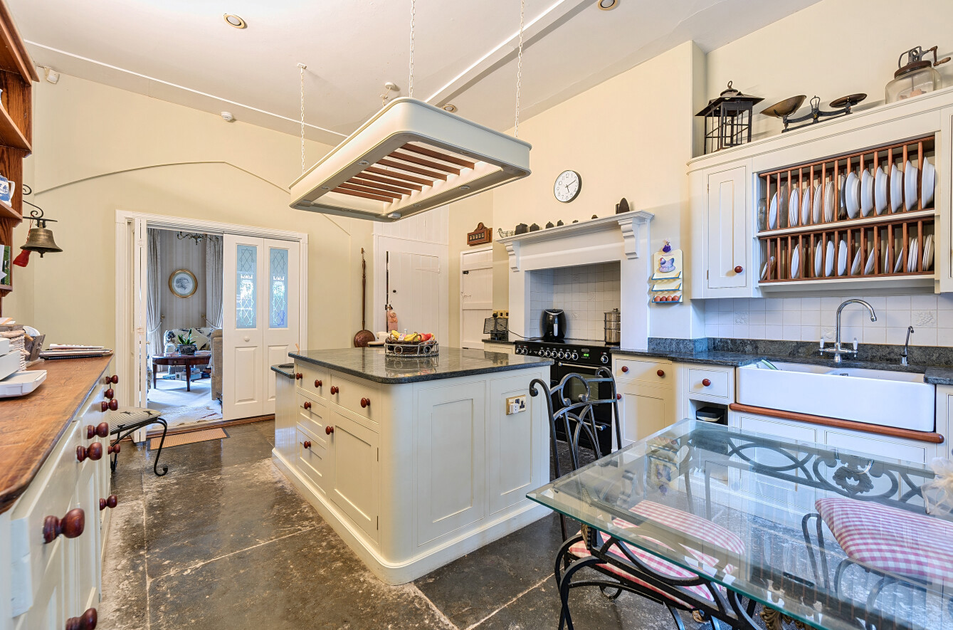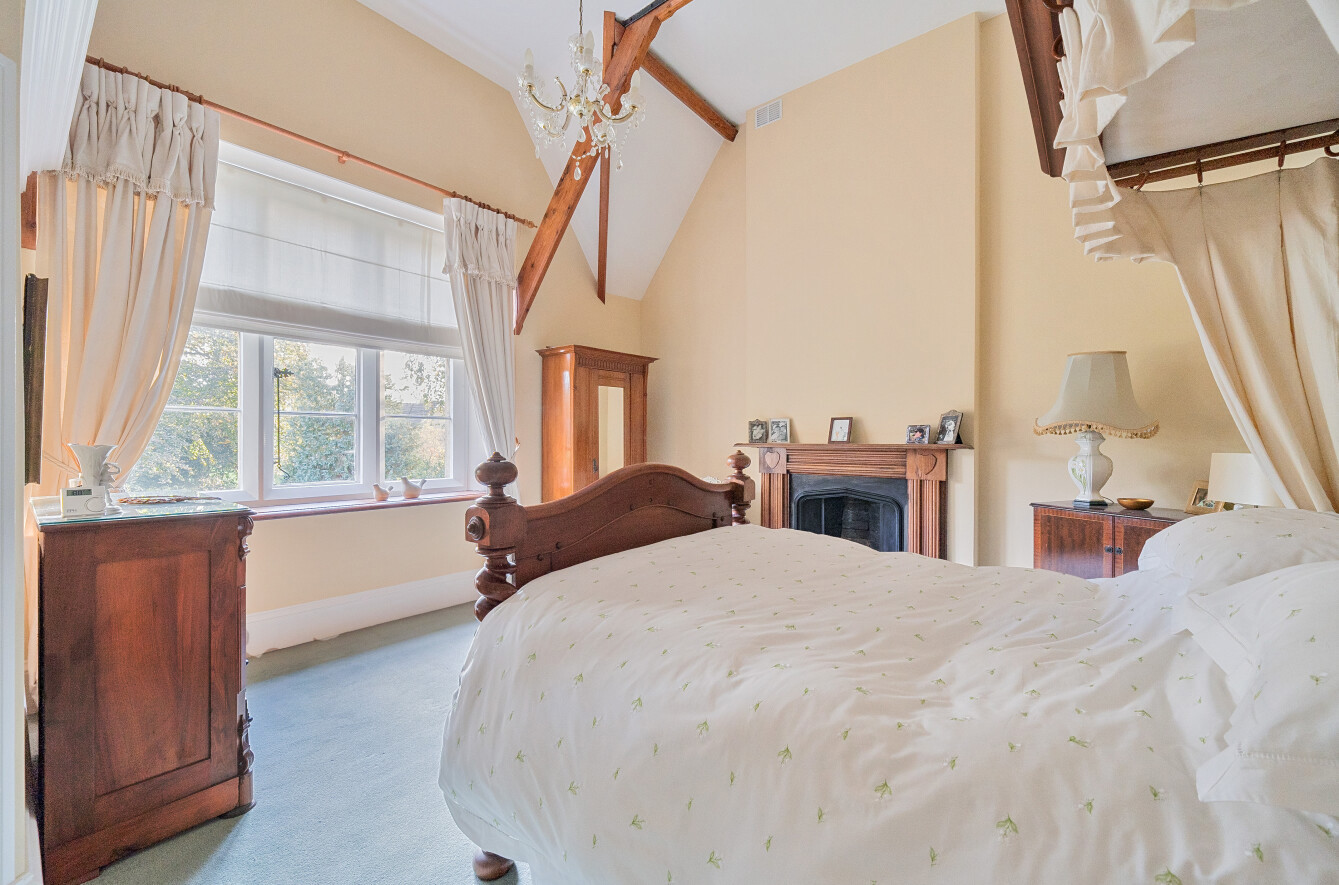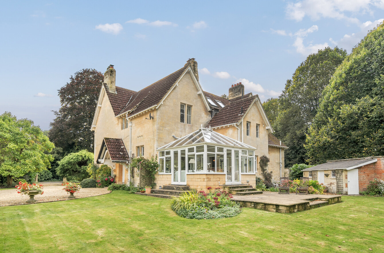 This handsome five-bedroom character property is nestled in a secluded setting within the desirable Wiltshire village of Holt, surrounded by enclosed gardens that ensure complete privacy. Originally constructed in 1876 as a Victorian rectory from the finest Bath stone, the property has historical ties to St. Katharine’s Church. It is believed to have been commissioned by a wealthy benefactor for his daughter and her husband, a local curate. ‘A great deal of care was taken to ensure the house was built to a high standard and in a wonderful style, which are just two of the reasons we were so attracted to it,’ say the owners. Arranged over two floors, with an additional lower ground floor basement, the ground floor features an excellent layout that promotes versatility and flow. Interconnected spaces include a kitchen, reception room, dining room, sitting room, utility and storage areas, as well as two conservatories, one of which houses an exercise pool. Upstairs, five bedrooms await, three of which boast en suite facilities, and one main bathroom. ‘These bedrooms truly impress with their thirteen-foot ceilings and exposed beams.’ Enveloped by mature trees and a charming red brick wall, St. Katharine House and its beautiful gardens offer a serene retreat from the hustle and bustle of everyday life. ‘My wife dedicated much time and energy to the garden’s redesign and development, and it now features a wide variety of rose bushes and peaceful spots to sit and enjoy the surroundings.’ The village boasts a great sense of community, characterised by its friendly and sociable atmosphere. Residents benefit from a good local shop and post office, as well as an excellent primary school and two pubs. Nearby towns, such as Bradford-on-Avon and Melksham, offer vibrant markets, shopping options, and restaurants. Chippenham station provides convenient access to London, and the village is just 25 minutes from Junction 19 of the M4 motorway.