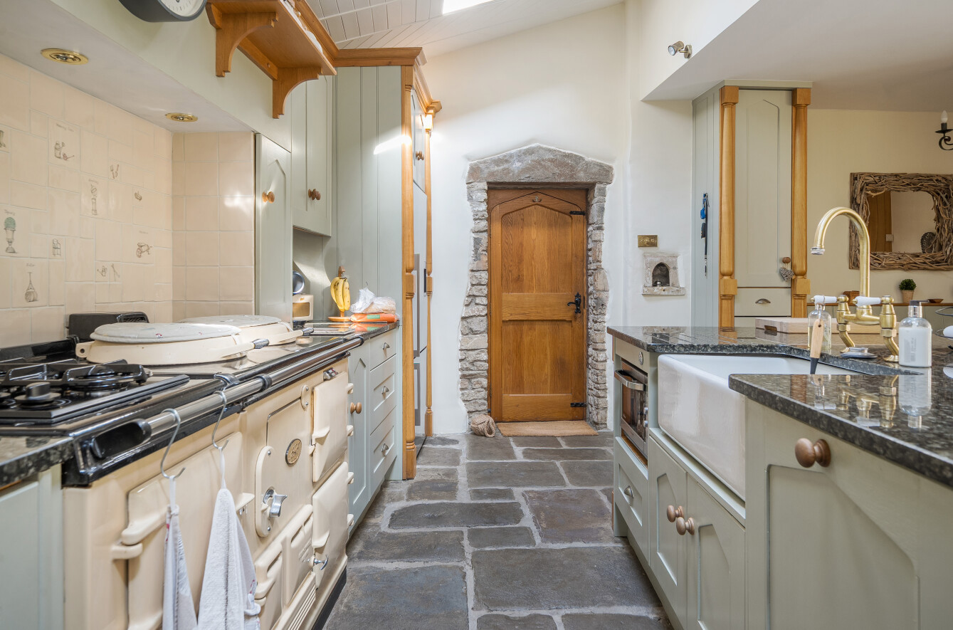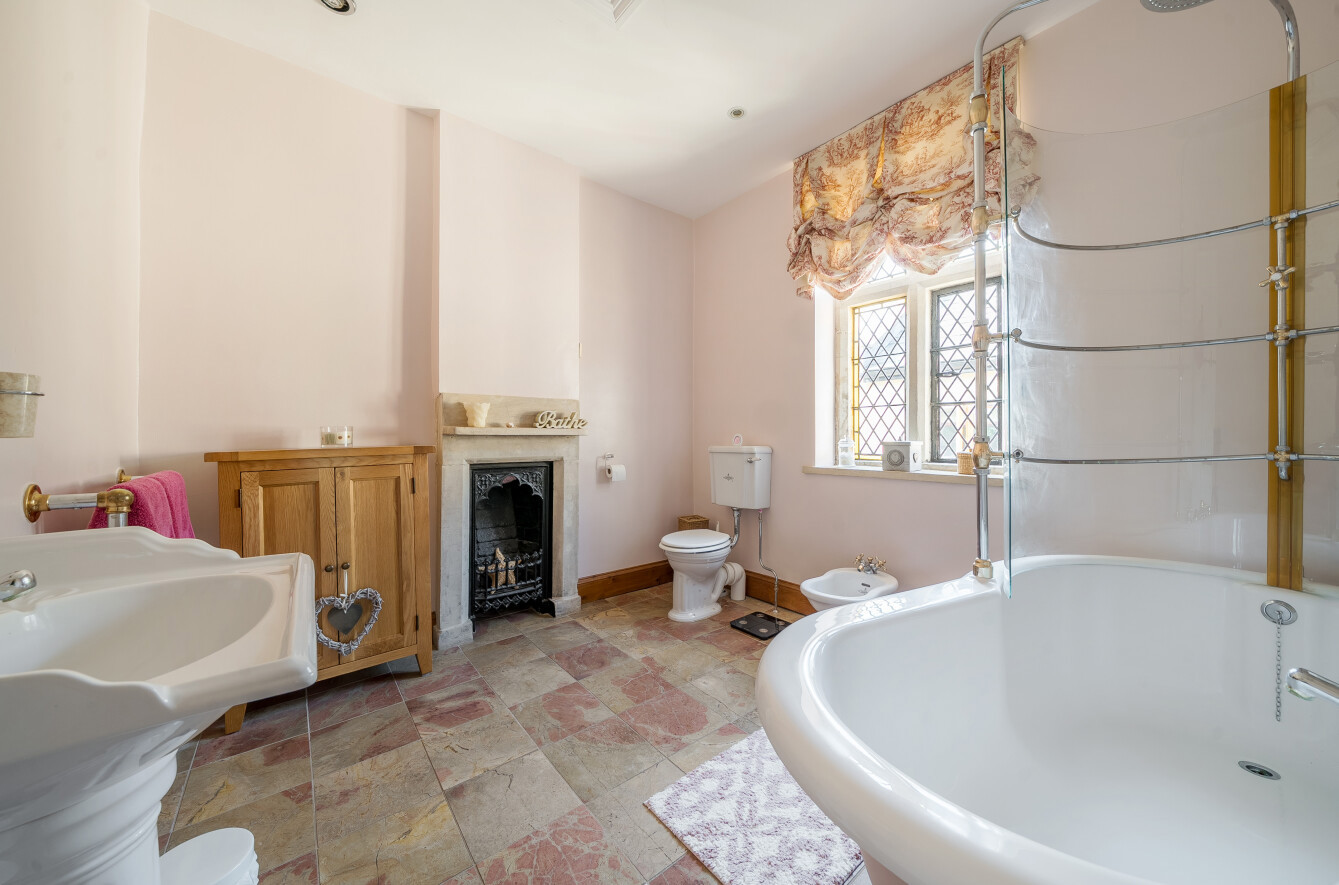 Inside, you’ll find generous proportions across two floors and a converted cellar – now a dry, tanked space perfect for storage. Each of the five bedrooms is full of unique character, with two boasting en suites. The expansive kitchen is a hub of the home: a bright, open-plan space with room for dining and entertaining, flowing seamlessly into the rest of the house. ‘Every room has been finished to a high standard, with quality fittings throughout, yet still retains the unmistakable soul of the building’s historic past,’ say the owners. The home is steeped in local lore – once serving as the village doctor’s surgery, it still draws in passers-by with long memories and fond stories. Its curb appeal is undeniable, with a striking façade, beautiful gardens, ample parking for up to six cars and garaging.