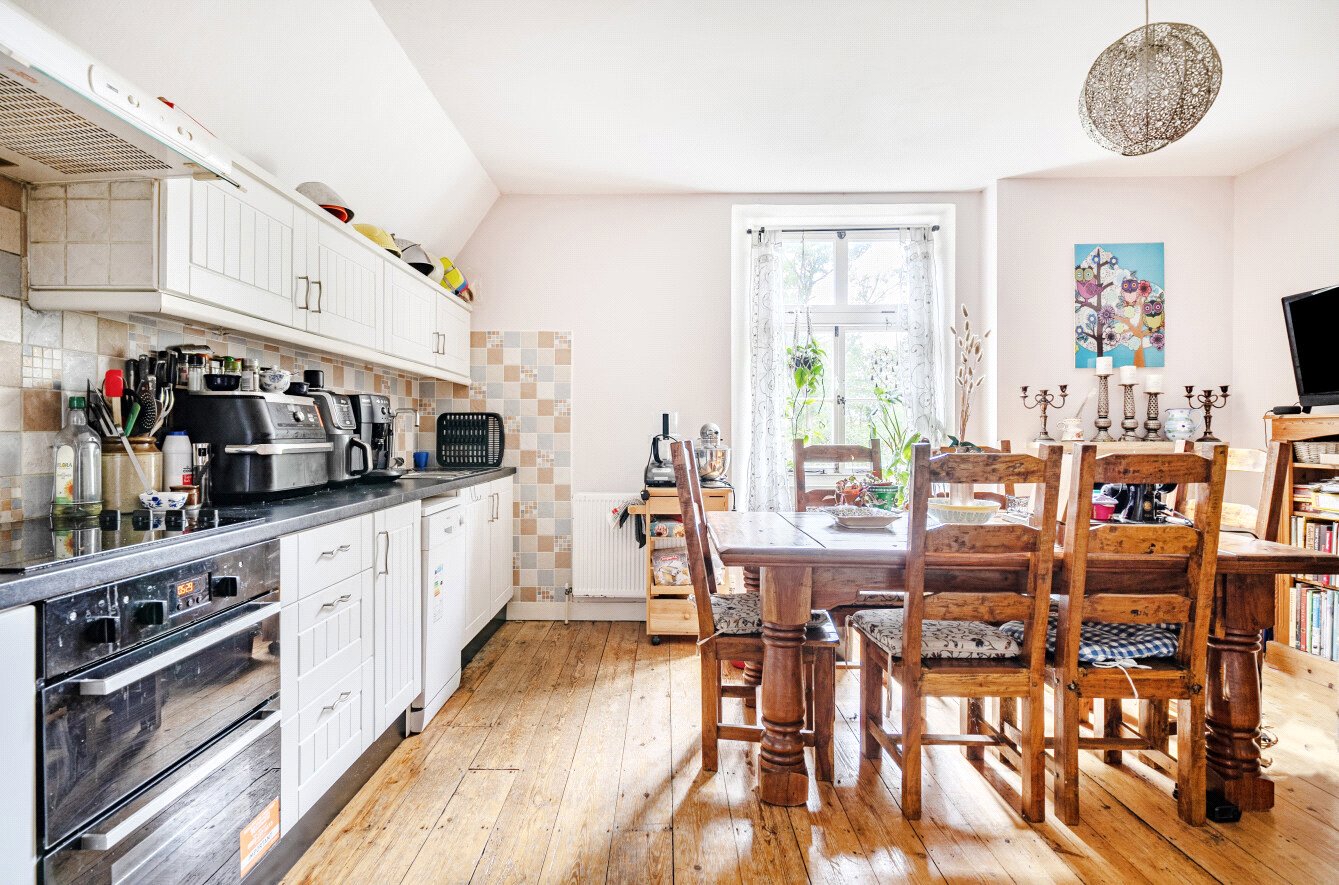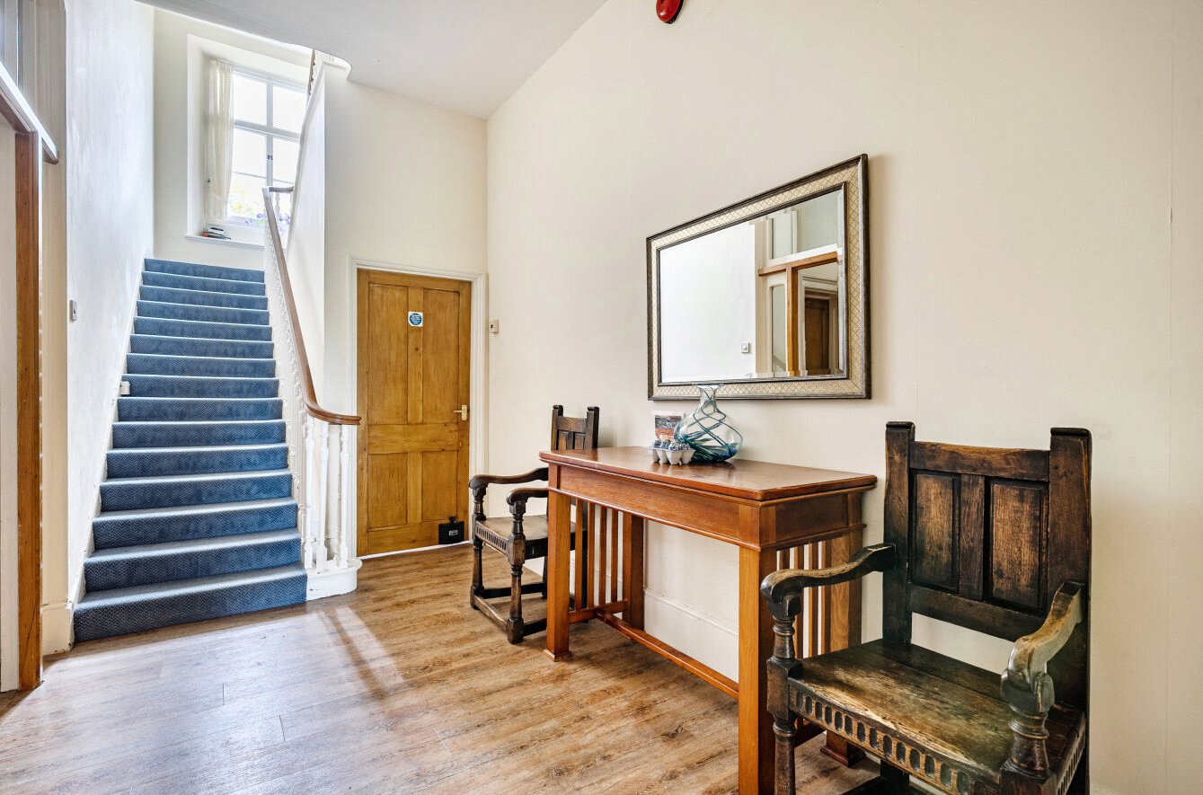 Arranged over three floors, the house offers exceptional flexibility, including an annexe that once housed the owner’s parents — ideal for multigenerational living or guest accommodation. Many original features remain – working shutters, fireplaces, stone floors and sash windows that flood the rooms with light.