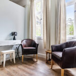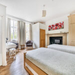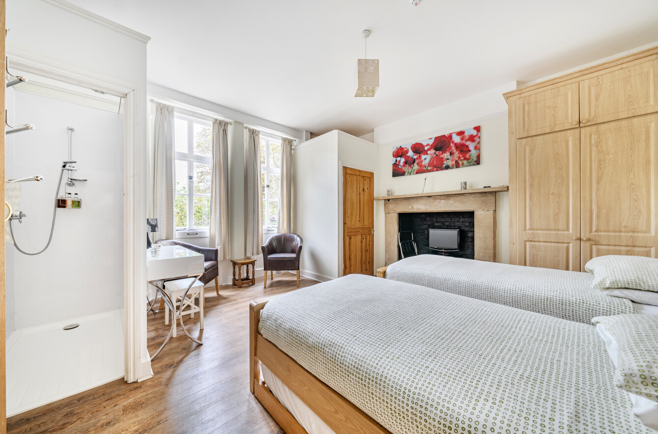 Arranged over three floors, the house offers exceptional flexibility, including an annexe that once housed the owner’s parents — ideal for multigenerational living or guest accommodation. Many original features remain – working shutters, fireplaces, stone floors and sash windows that flood the rooms with light.