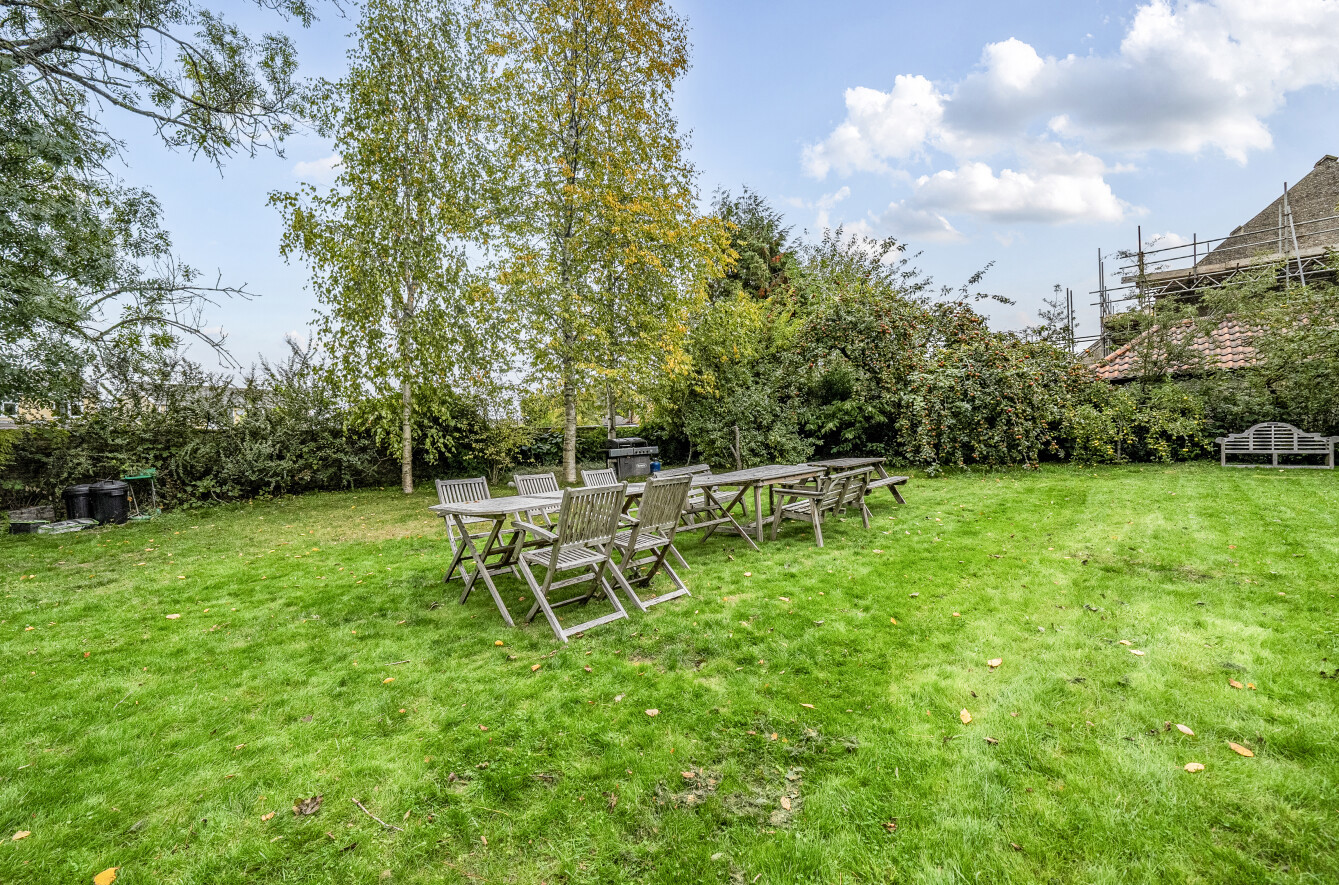 The rear garden is a private haven, fully enclosed with open lawn, mature trees and a wild, woodland feel at the far end. ‘Apple trees, birdsong and dragonflies make it a truly magical space.’