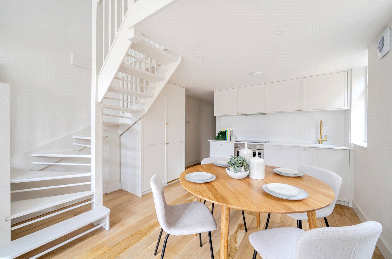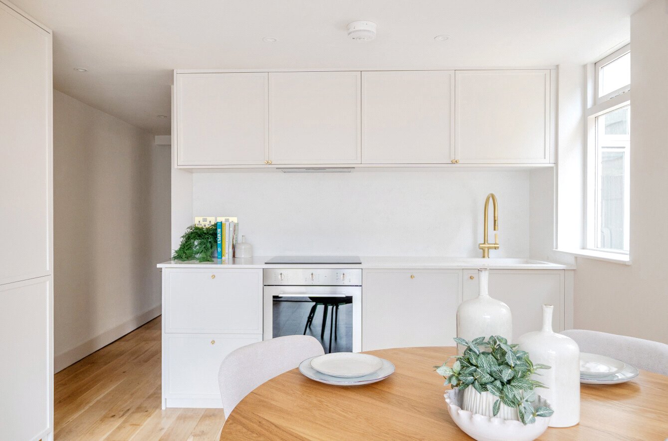 Recently refurbished throughout, the home has been finished to an exceptional standard. Every detail has been considered, from the beautiful new kitchen and bathrooms to refinished solid English oak flooring, fresh decoration and bespoke cabinetry that makes clever use of every inch of space. ‘We wanted to honour what Dad created here, thoughtfully updating it with great care and attention to detail.'