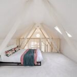 Upstairs, a mezzanine bedroom features full-height wardrobes with a hidden door leading to a serene shower room – ‘our children call it the Narnia door.’