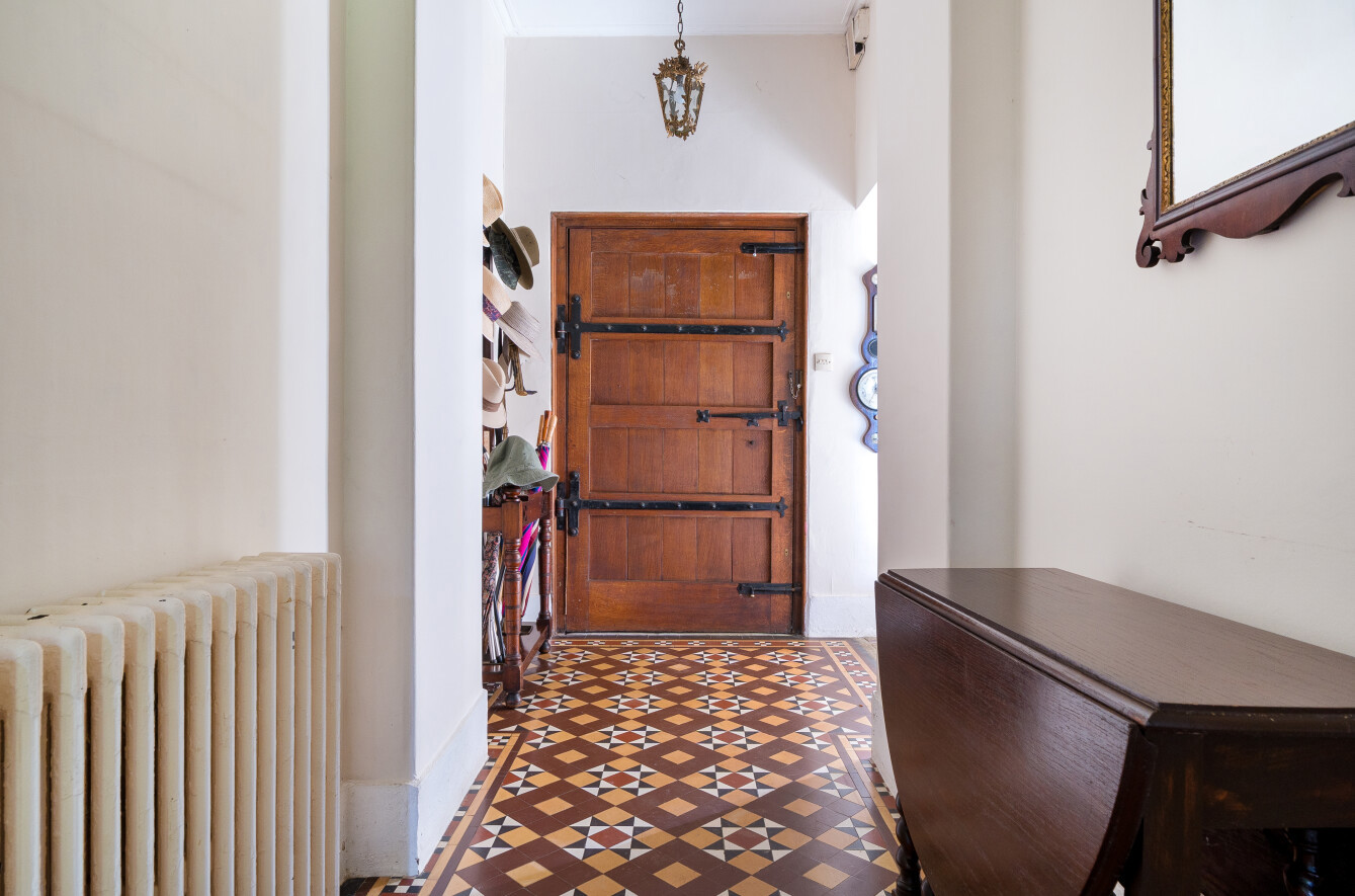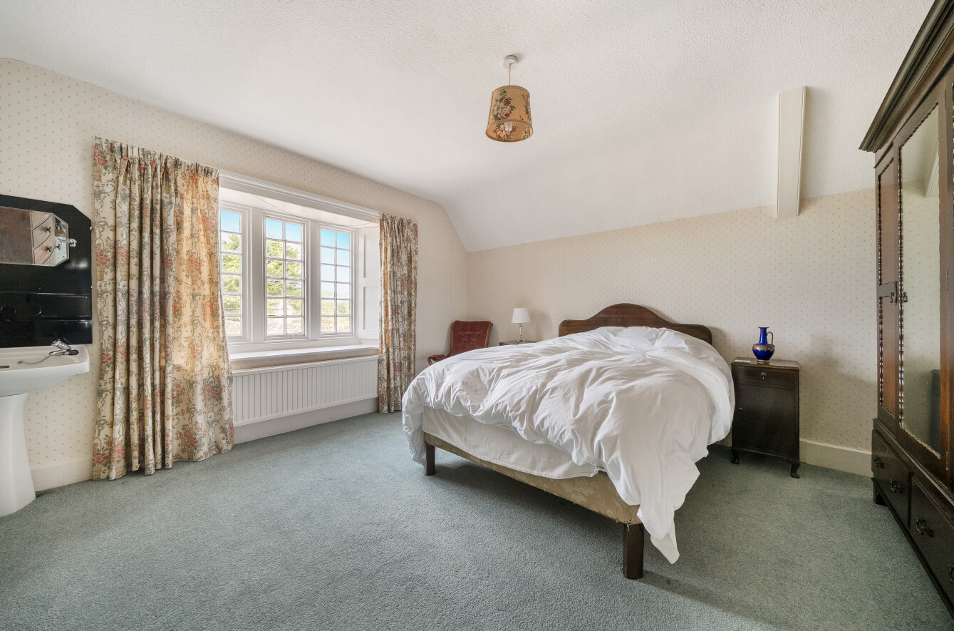 The gardens are beautifully mature, with sweeping lawns, established trees, a kitchen garden, orchard, and an adjoining two-acre paddock. ‘Our mother loved the gardens and dedicated a lot of time to developing them for us all to enjoy, from boules on the lawn to family lunches in the sunshine.’ Outbuildings and barns provide extensive scope for equestrian or smallholding use, while a private driveway leads to ample parking and a garage. ‘The outbuildings offer so much potential to the right person.’