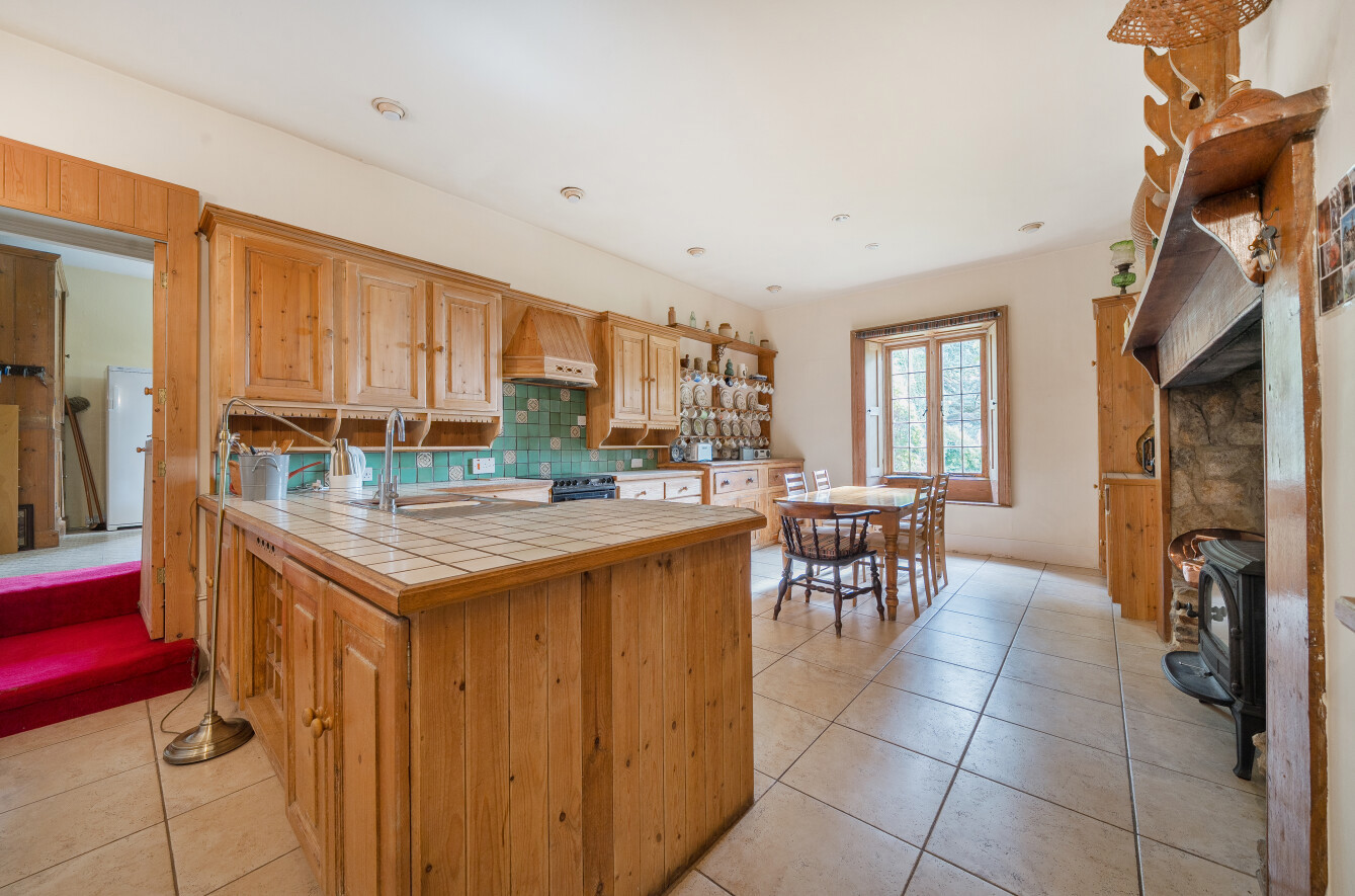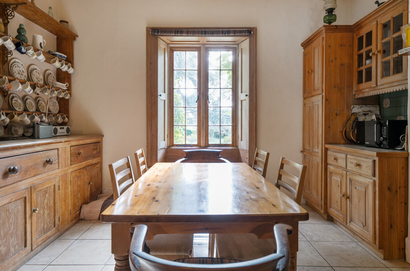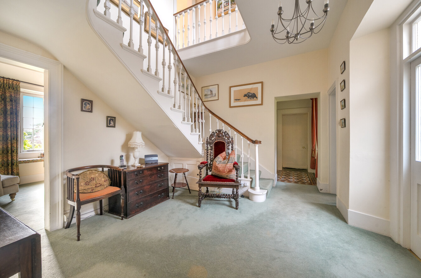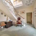 Set within four acres of gardens and grounds, the property offers an impressive yet comfortable layout. High ceilings, large sash windows, and elegant proportions define the interiors. The principal reception rooms include a handsome drawing room, dining room, and sitting room, while a vast billiard room provides a unique space for entertaining. A farmhouse-style kitchen and galleried staircase add to the sense of grandeur. Upstairs, six bedrooms are served by two en-suites and additional bathrooms, with the flexibility of a wing that can be arranged as a self-contained two-bedroom annexe. ‘It’s a larger home that one doesn’t rattle around in – a perfect size.’